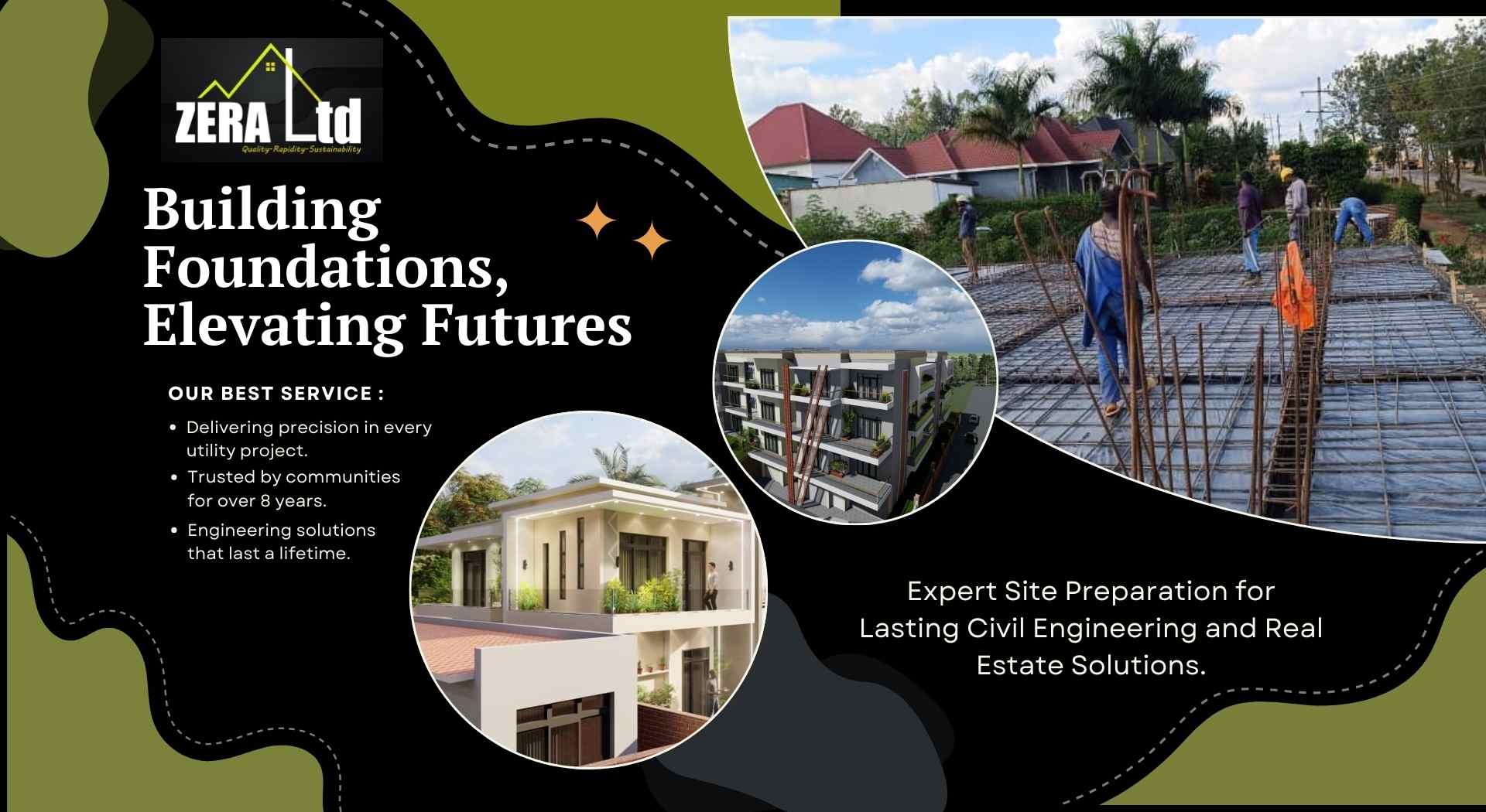 At ZERA LTD, we offer a wide range of specialized construction services tailored to real estate development. Our expertise includes precision-based tasks such as reinforced concrete structures, high-quality masonry, and waterproofing solutions. These services are designed to enhance the durability and value of properties, making them suitable for residential, commercial, and industrial use. We also integrate innovative technologies to improve construction efficiency and environmental sustainability.